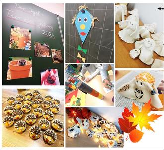 Die Klasse 1a unterhielt sich über das Wetter und bastelte einen Regenmacher. In der Parallelklasse gab es ein kleines Herbstfrühstück, nachdem ein lustiger Drachen angefertigt wurde. In der zweiten Klasse ging es gruselig zu, denn kleine Geister, die die Kinder allein herstellten, spukten durch das Zimmer. Die Klasse 2b machte sich mit dem Tier des Jahres 2024 bekannt – dem Igel. Frau Graf hatte sogar Igelmuffins gebacken. Die toll gestalteten Plakate, die nun im Schulhaus hängen, erläutern den schrumpfenden Lebensraum der Igel und auch, in welcher Gefahr der Igel mit zunehmendem Straßenverkehr lebt.