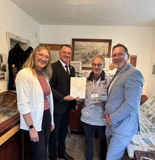 Mit der Auszeichnung "Ehrenamt des Monats" würdigt Landrat Udo Witschas nicht nur die jahrelange, unermüdliche Arbeit von Theo Hensel, sondern auch die nachhaltige Bedeutung, die sein Engagement für die gesamte Region hat. Gemeinsam mit der Ehrenamtsbeauftragten Dunja Reichelt und Bürgermeister Matthias Seidel übergab der Landrat Herrn Hensel die Urkunde und ein kleines Präsent.