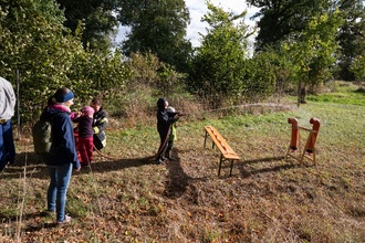 Weiter ging es durch die Fasanerie zur 3. Station „Baumkunde“. Neben dem Zuordnen von Baumarten anhand der Stämme und Holzstücke musste hier in Einzelwertung eine Entfernung abgeschätzt werden, um am Ende des Tages einen Sonderpreis zu erhalten.