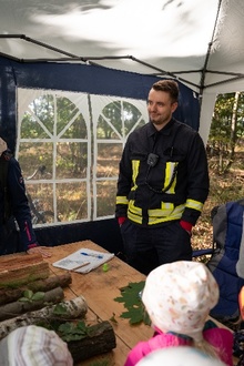 Gut gestärkt ging es an das Feuerwehrhaus nach Baruth, um an Station 5, der „Infostation“, Wissenswertes über das Hilfeleistungslöschfahrzeug zu lernen.