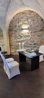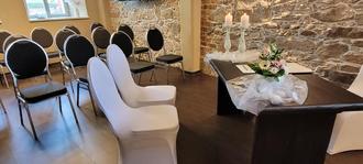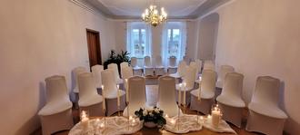 Das Trauzimmer hat eine Kapazität von 25 bis 30 Personen. Im Trauzimmer besteht zudem die Möglichkeit, Namensweihen durchzuführen.