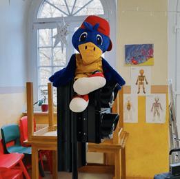 Mit viel Spaß, Bewegung und Freude vermittelte er unseren Vorschulkindern die wichtigsten Verkehrsregeln. Anschließend übten die Kinder interaktiv das richtige Verhalten im Straßenverkehr als Feuerwehr, Polizei oder einfach als Fußgänger.