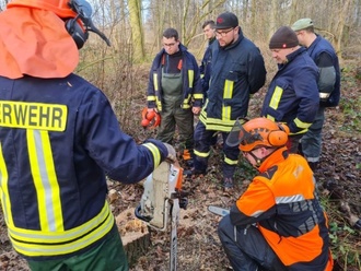 Bereits Ende Dezember trafen sich alle Kameraden zu einem gemeinsamen Einsatz und fuhren in den Wald. Dort wurde geübt, wie der richtige Umgang mit der Kettensäge erfolgt. Für alle eine gelungene Aktion.