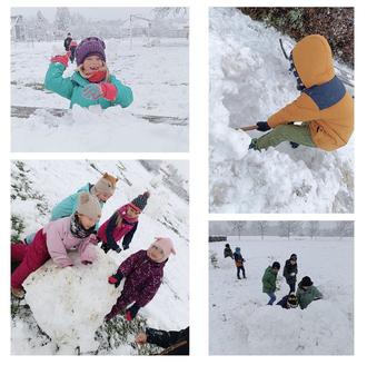 Was für eine Freude, als es Anfang Januar endlich richtig schneite. Mehr als 10 cm Schnee und entsprechende Minusgrade verzauberten die Landschaft in ein Winter-Wonderland. Auch auf die Grundschule Malschwitz fielen dicke Flocken, begruben den Sportplatz unter einer herrlichen Schneedecke und legten sich auf die Zweige der Hecken und Bäume.