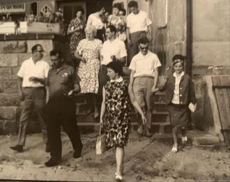 Von hinten links nach rechts - Frau Ballack mit Mann, Frl. Müller aus Weißenberg ( die von allen Kollegen „Mützen-Müllern“ genannt wurde), Herr Koban mit Frau, das Ehepaar Bartusch, neben Frau Bartusch eine mir leider heute unbekannte Person, Fr. Kosk und Ehmann, fremde Person, Fr. Nelamischkis, Frau Wenzel, Herr Höhne, Frau Ssykor und das Ehepaar Müller.
