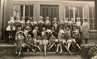 Das letzte Foto zeigt Frau Gärtner mit ihrer 1. Klasse am 1. September 1964.