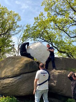 Bedauerlich ist aber, dass das Unternehmen ProStein in etwa 100 m Luftlinie weiterhin Sprengungen durchführt, wie die am 12.02.2025 mit einer Sprengstoffmenge von rund 17.000 kg und einer Ausbruchsmasse von reichlich 60.000 t. Diese Sprengung erzeugte wieder einmal ungeheure Empörung bei den Menschen rings um den Steinbruch. Eine Betroffene schrieb in einer Mail an das Bergbauunternehmen unter anderem: „… es gab Vibrationen, dass die Fenster klirrten, gefolgt von kleinen Nachbeben…“. Besser kann man die Situation nicht beschreiben. In dem Video, das im Inneren von Gebäuden während der Sprengung gemacht wurde, bewegte sich das Wasser im Glas wellenförmig, die Gläser klirrten. Von diesem Erdbeben in den Ortschaften rings um den Steinbruch Pließkowitz ist natürlich der Teufelsstein in einem Abstand von 100 m „NICHT“ betroffen. Man musste zwar schon einen Stein des Felsens sichern, da die Gefahr des Absturzes durch ständiges Beben der Erde bei Sprengungen gegeben war, aber was interessiert das schon die Firma Prostein, wo es doch seit der Übernahme 2015 ausschließlich um Gewinnmaximierung geht. Was die Halde anbelangt, wurde sie bis zum heutigen Tag nicht korrigiert, um die Sichtachsen zu gewährleisten. Verstehen die Verantwortlichen überhaupt, welchen einmaligen Schatz wir mit dem „Stonehenge der Oberlausitz“ vor Ort haben?
