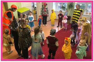 Mit diesem Lied begannen unsere Faschingstage im Malschwitzer Witaj-Kindergarten. Am Rosenmontag versammelten sich alle großen und kleinen Narren in schillernden Kostümen im Morgenkreis. Mit einem kräftigen „Malešecy - Helau“ begann unser Tag. Bei Stuhltanz, Würstchen-Wettessen, Schokokuss-Essen, Topfklopfen, Zeitungstanz und anderen Spielen verging der Tag wie im Flug. Den Faschingsdienstag begannen wir mit einem gemeinsamen Frühstück, damit wir gestärkt und laut singend durchs Dorf ziehen konnten. Natürlich durfte eine Polonäse durch die Gemeinderäume auch nicht fehlen. Am Aschermittwoch zog dann wieder Ruhe in unsere Einrichtung ein.