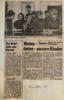 Herr Müller musste sich als Rentner später immer wieder einmal von seiner Frau anhören, dass er es mit seinem Kollegium doch sehr guthatte, denn jeder gab sein Bestes. Vielleicht ist aber dieser Einsatz auch ein Grund dafür, dass ich, die kleine Schule in Baruth, zu den Besten im Kreis Bautzen gehörte. Wurden unsere ehemaligen Schüler an der EOS (erweiterte Oberschule, heute Gymnasium) oder als Lehrling in den Betrieben gefragt, von welcher Schule sie kämen, so merkten sie an der Reaktion der Fragenden, dass ihnen mein guter Ruf vorausgeeilt war. Auch in der „Sächsischen Zeitung“ erschienen oft Artikel und man berichtete über die Aktivitäten hier in Baruth.