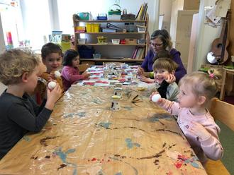 “Oh, das sind tolle Muster! Die will ich auch auf meinem jejko haben!”, prajachu dźěći Malešan Witaj-pěstowarnje. Z jehličku a pjerkom skedźbnje horcy wósk na jejko přinjesechu. Wot swětłej do čmołej barby a najwšelakorišich mustrow so tuž jedne jejko po druhim změni a nasta na kónc pisany potpurri krasnych jejkow. Hordźe njesechu dźěći jejka w korbiku domoj.
