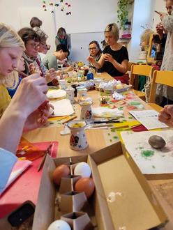 Jutrowne jejka molować? Nó jasne, to je tradicija w Malešanskej pěstowarni! Tola nic jenož ći mali so w jejkamolowanju wuspytachu. Dobry wothłós namakaše staršiski wječork pod temu “molowanje jejkow pod fachowym nawodom”. Fachowča knjeni Jaworkowa pokazaše najwažniše techniki a mustry. Tak nastachu krasne pisane jejka starši, kotrymž běchu jejka knjeni Jaworkoweje jako pohon. Mjez zabawnymi rozmołwami knježeše koncentrowany a nimale meditatiwny měr.