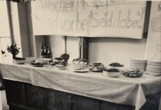 Schnell waren die Girlanden gespannt und Stühle und Tische zur Tafel zusammengestellt. Vor der Wandtafel wurde das Buffet aufgebaut, welches einige Schülerinnen gemeinsam mit den Elternaktiv „gezaubert“ hatten.