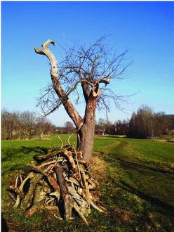 Naturnaher Obstbaumschnitt mit Erhalt von stehendem und liegendem Totholz als Lebensraum für verschiedene Tierarten, abgeschlossene Maßnahme in der Gemeinde Obergurig