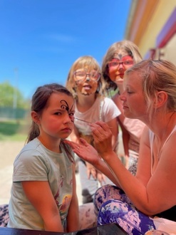 Es wurde ein sportlicher Stationenpark, der alle Wünsche der Kinder im Blick hatte. Wasser spritzen, balancieren, hüpfen, über Bälle steigen, durch den Tunnel kriechen, Kinderschminken, Resi füttern und streicheln und Eis essen. Zum Abschluss hatten alle Kinder eine gestempelte Urkunde. Für die Freude am Mitgestalten.
