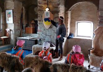 Ein Highlight war der Besuch des Türmers Andreas Tronicker und seine Führung durch Bautzen. Wir trafen uns am Reichenturm und unsere Aufmerksamkeit galt dem mitgebrachten Hund und den interessanten Ausführungen von Herrn Tronicker über Gebäude, den Domschatz und die Wasserkunst. Den Lauenturm bestiegen wir Kinder mit großer Freude und machten es uns auf den Wildscheinfellen gemütlich.