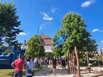 Freitag, 20.06.2025 gestaltete die Elterninitiative mit uns einen Spiel- und Begegnungsnachmittag. Der Kindergarten eröffnete diesen mit einem kleinen Programm in sorbischer Sprache. An diesem Nachmittag hatten die Kinder verschiedene Unterhaltungsmöglichkeiten. Es gab eine große Hüpfburg, einen Eiswagen, eine Schminkstation, Riesenseifenblasen, ein Holzspiel sowie viele Bewegungsspielsachen. Dank des leckeren Kuchens mit Kaffee und Bratwürsten musste keiner hungern. Höhepunkte waren die Auftritte von Pipi Langstrumpf (Susann Kopke), des Zauberers “Gerar” (Gerat Wróbl aus Schmerlitz) sowie der Tanzgruppe von Madlen Neitsch.