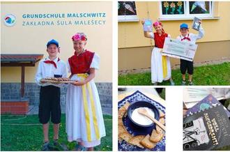 Am 15. August 2024 bestellte der Schulleiter Herr Biskop alle Kinder der Grundschule Malschwitz zu einer außerordentlichen Schulversammlung auf den Hof. Dort warteten schon zwei Sorbischkinder, Elisa und Karl, in ihrer Tracht. Sie hielten einige Geschenke in der Hand. Wie staunten alle, als das Geheimnis des ersten Riesengeschenkes gelüftet wurde. Ein Scheck in Großformat verkündete einen Geldbetrag von fast 7 Millionen Euro. Wer verschenkt denn 7 Millionen Euro? Herr Biskop erklärte, dass dieses Geld vom Freistaat Sachsen für uns gestiftet wurde, um in Malschwitz am Standort der Oberschule eine neue Grundschule zu errichten. Am Vortag wurde der Scheck extra von unserem Kultusminister Herrn Piwarz aus Dresden nach Malschwitz gebracht.