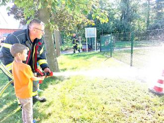 Mit Pflaster, Kopfbinde und Fieberthermometer begrüßte die Kuscheltierärztin unsere Teddyeltern im Teddykrankenhaus. Jedes kranke Kuscheltier wurde getröstet, untersucht und verarztet. Dabei lernten die Kinder, die wichtige Telefonnummer 112 kennen. Mit viel Tatütata kamen vor die Einrichtung zwei Feuerwehren gefahren. Nach der erfolgreichen Evakuierungsübung durften die Kinder, die Feuerwehr besichtigen und selbst das Feuerlöschen üben. Allen Kindern hat dieser Vormittag viel Freude bereitet.