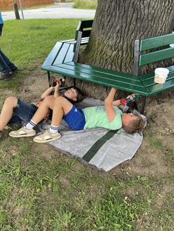 Als alle Vorbereitungen erfolgt waren, wurde die Standfläche gereinigt und die Montage der Bank konnte beginnen. Dabei wurden wir durch zwei Helfer von der Jugendfeuerwehr unterstützt.