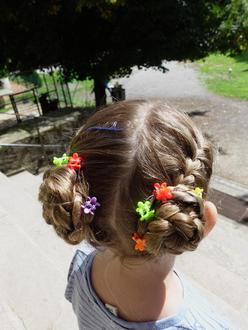 Als Ausklang der Ferien fand ein Haar-Styling-Tag statt. Dieser kam bei unseren Mädels so gut an, dass er auf 3 Tage ausgedehnt wurde. Unter den geschickten Händen von Kathleen, hatte nun jeder die Möglichkeit, sich farbige Strähnen, tollste Flechtfrisuren und Tattoos machen zu lassen.