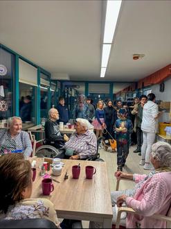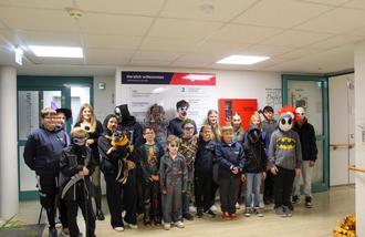 Anschließend machten sich unsere Geister und Monster auf den Weg ins Johanniterhaus, um die älteren Bewohnerinnen und Bewohner zu überraschen. Mit im Gepäck hatten sie kleine Snacks, über die sich alle sehr freuten. Es war ein wunderschöner Moment, zu sehen, wie wir den älteren Menschen ein Lächeln ins Gesicht zaubern konnten.