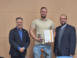 Maximilian Becker aus Braunschwende wurde in der gestrigen Stadtratssitzung für seine herausragenden Leistungen bei der Deutschen Meisterschaft im Handwerk geehrt. 130 Absolventen aus verschiedenen Gewerken stellten ihr Können bei der Meisterschaft im Handwerk unter Beweis und kämpften um den Bundessieg. Herr Becker konnte den Sieg im Gewerk Anlagenmechaniker für Sanitär-, Heizung- und Klimatechnik für sich erringen. Neben seinen tollen beruflichen Leistungen ist Maximilian Becker auch noch ehrenamtlich als Kamerad der FFW Braunschwende tätig. Bürgermeister Andreas Koch sowie der stellv. Stadtratsvorsitzende Karsten Ecke ließen es sich nicht nehmen Herrn Becker persönlich zu beglückwünschen.