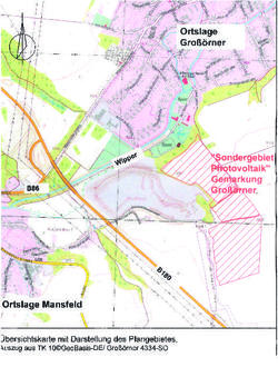 | • | Umweltbericht zum Vorhabenbezogenen Bebauungsplan „Sondergebiet Photovoltaik“ der Stadt Mansfeld, Stand Februar 2023 - Schutzgut Mensch, Tiere, Pflanzen und Biologische Vielfalt, Boden, Wasser, Luft, Klima, Landschaft, Kulturelles Erbe und sonstige Sachgüter |