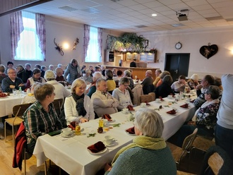 Endlich durften wir dieses Jahr wieder alle Omas und Opas, alle Seniorinnen und Senioren aus unserer Umgebung zur Weihnachtsfeier in der Gaststätte Warnt einladen. An feierlich gedeckten Tafeln, mit leckeren gebackenen Kuchen von unseren Eltern, Kaffee von unserer Gemeinde und mit unserem Weihnachtsprogramm verbrachten die Gäste einen gemütlichen Nachmittag. Endlich saß man wieder beisammen konnte über dies und jenes plaudern und lachen. Unser Programm wurde mit tollen Leckereien, übergeben von unserem Bürgermeister Armin Kunze, belohnt. Doch dann staunten wir nicht schlecht, alle Gäste sammelten Geld für uns. Unser ehemaliges Kindergartenkind Arne überreichte es uns.