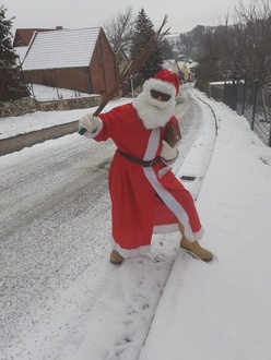 Aber das müssen wir euch auch noch erzählen: Ihr könnt es euch sicher nicht vorstellen. Wir haben bei unserem Spaziergang vor ein paar Tagen den Weihnachtsmann am heller lichten Tage gesehen.