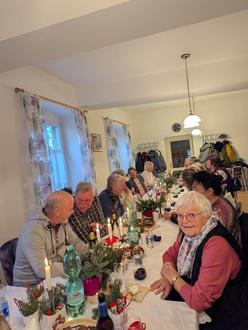 Bei Stollen, selbstgebackenen Plätzchen und anderen Leckereien ließ man das vergangene Jahr Review passieren. Werner Thust war mit seinem Akkordeon gekommen, um gemeinsam mit den Senioren Weihnachtslieder zu singen. Jeder wünschte sich ein Lied und noch eins und noch eins. "Ich habe nach reichlich anderthalb Jahren das erste Mal wieder gesungen und das waren Weihnachtslieder",so ein Mitglied der Seniorengruppe und bedankte sich dafür. Marie Matthes, Schulpädagogin an der Grundschule in Osterfeld war gekommen, um über ihre Arbeit zu sprechen. Eine wichtige und verantwortungsvolle Aufgabe. Unter anderem sprach Frau Matthes an, dass an der Grundschule Lesepaten gesucht werden.