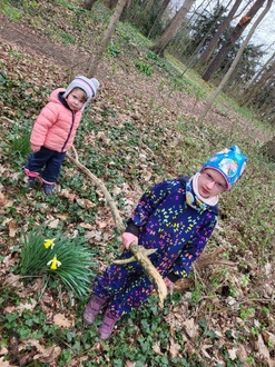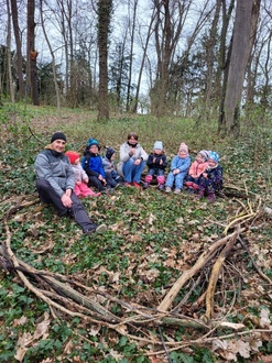 Hierzu sammelten wir viele verschiedene Stöcke und legten diese im Halbkreis zu einem „Sofa“.
