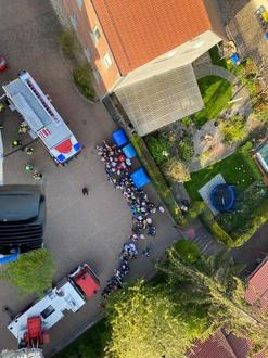 Die große Aufregung der Kinder Klasse 1 bis 4 der Grundschule Stößen war zu spüren, als kurz nach der Alarmierung der Feuerwehr, die großen Feuerwehrautos mit den Kameraden auf dem Schulhof ankamen. Alle Kinder hatten sich zusammen mit ihren Lehrern bereits auf dem vorgegebenen Sammelplatz eingefunden. Alle? Nein … 2 Kinder wurden noch im Gebäude vermisst. Routiniert machten sich die Feuerwehrmänner und Frauen ans Werk. „Wir bringen die vermissten Kinder nun sicher nach draußen“, war kurze Zeit später zu hören. Alles gut gegangen, Übung beendet!