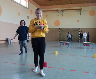 Die ganze Schule, samt Turnhalle und Schulhof, wurde mit verschiedenen Stationen in Beschlag genommen. So konnte man sich in der Turnhalle zum einen an Geschicklichkeitsübungen auf dem Bobbycar oder im Jonglieren kleiner Bälle üben.