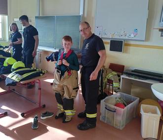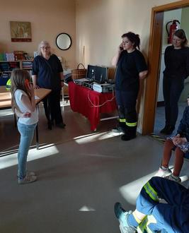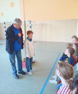 Gleichzeitig führte Herr Bergner in der Turnhalle ein Frage- und Antwortspiel rund um das Thema Feuerwehr durch. Dabei konnten die Kinder zeigen was sie schon alles wissen und wo noch einmal aufgefrischt werden musste. Über das Verhalten im Straßenverkehr wurde auch gesprochen und informiert.