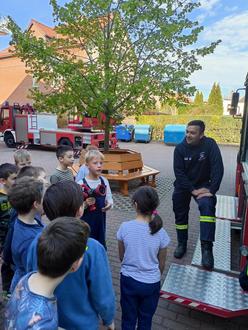 Der Zeitplan war eng gefasst und so ging es auch direkt weiter. Alle Klassen der Grundschule durften nun an verschiedenen Stationen ihr Feuerwehrwissen erweitern, austauschen und natürlich „Neues“ dazu lernen!