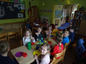 Die langersehnte Kindergarten-Übernachtung war nun endlich ran. Mit vollgepackten Rucksäcken rückten die Kinder ab 4 Jahren am Mittwochmorgen an, denn sie wussten, diesen Nachmittag werden sie nicht von ihren Lieben abgeholt. Nein, heute ist Party-Time. Bis zum Nachmittag verlief der Kita-Alltag ganz gewohnt ... aber ab 17.00 Uhr versammelten sich alle mit den Erzieherinnen und auf ging es zur Klingelparty. Was war das für ein Spaß, endlich durften die kleinen Strolche auch mal die Erwachsenen erschrecken. Mit gefüllten Taschen von Geschenken wie Mango, Heidelbeeren und Süßigkeiten, ging es dann zurück in unser Kita-Haus. Dort wartete für die hungrigen Strolche die gedeckte Abendbrotstafel mit den gewünschten Sandwiches ... lecker.