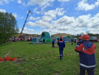 Den Gästen wurde neben den Läufen der Kameraden und Kameradinnen auch anderes geboten. Da uns das Wetter nicht im Stich ließ, wurde durch einige Kameraden und Helfer schnell die versprochene Hüpfburg aufgebaut. Diese wurde sofort von den kleinen und größeren Besuchern in Beschlag genommen und kam richtig gut an. Die mitgeführten Fahrzeuge der einzelnen Ortswehren wurden von den Besuchern interessiert und genau betrachtet.