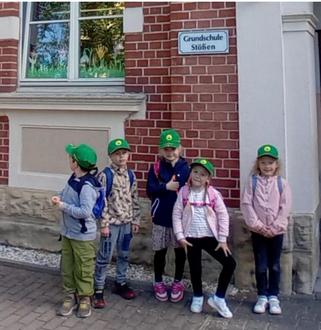 Endlich! Schon lange fieberten wir Schulanfänger dem heutigen Tag entgegen. Heute (14. Mai 25) fuhren wir mit dem Bus und unserer Erzieherin in die Grundschule Stößen. Bei unserer Ankunft waren die Schulkinder im Unterricht. Wir hörten dies durch offene Fenster und schlichen uns deshalb ganz leise zum Hort. Dort wurden wir sehr freundlich von den Horterzieherinnen begrüßt und zum Spielen auf dem Hortspielplatz eingeladen. Natürlich nahmen wir dieses Angebot gerne an. So verging die Zeit bis zur Pause schnell. Zuerst schauten wir den Schulkindern ein bisschen zu, dann sahen wir ehemalige Rathewichtel oder unsere Geschwister und verbrachten die Hofpause mit ihnen.