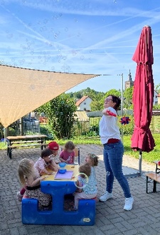 Auch die kleinen Frechdachse hatten in der Zwischenzeit ihren Spaß in der Einrichtung. Sie suchten, nach einem ausgiebigen Frühstück, im Garten des Kindergartens ihren eigenen Schatz und hatten viel Zeit für Spiel und Spaß.