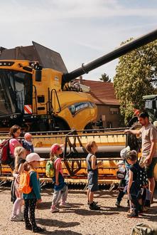 Doch das Abenteuer war noch nicht zu Ende. Die Kinder wurden in die Welt der Landmaschinen eingeführt und durften einen Mähdrescher und einen Traktor aus nächster Näher bestaunen.