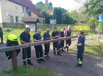 Am 31.05.2025 hatte die Schönburger/Possenhainer Wehr in Verbindung mit den Kameraden aus Prittitz und der Wasserwehr einen praktischen Ausbildungstag auf der Saale. Bevor das Einsetzen der Boote stattfand waren noch einige Übungen und Stationen zu absolvieren. Es fing an mit Knotenkunde, die man zur Wasserrettung benötigte. Eine Wasserboje, Rettungsring, Spineboard (Rettungsbrett) und ein einteiliger Überlebensanzug wurden erklärt. Desweiteren noch Schwimmwesten in verschiedenen Varianten vorgeführt. Die zwei Boote wurden dann zu Wasser gelassen und die Bootsführer absolvierten einige Rettungsübungen z.B. Mensch über Bord, kursgerechtes aufstoppen, anlegen, wenden auf engsten Raum. Nach diesen Manövern kam das Kommando „zum Abmarsch fertig“ und die Boote wurden aus dem Wasser geholt und die Ausrüstung auf die Fahrzeuge verladen. Die Nachbesprechung fand im Feuerwehrhaus in Schönburg mit einen kleinen Imbiss statt. Dabei wurden schon Termine für eine weitere Übung geplant.