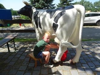 Das Großgestewitz neben dem Kinderfest auch ein Ort der Begegnung und des Wiedersehend ist, zeigt das rechtzeitige Kommen. Horst Kettner (93) mit seiner Ehefrau Maria zählten zu den ersten Besuchern. Und der 8-jährige Alwin Schreiber aus Osterfeld nahm schon mal die Kuh ins Visier. Es war keine lebendige Kuh, aber die Abläufe beim Melken konnte man schon „trainieren“. Der weitere Verlauf des Kinderfestes war eine Bestätigung der Mühe der Vereinsmitglieder des Kultur -und Heimatvereins e. V. Großgestewitz.
