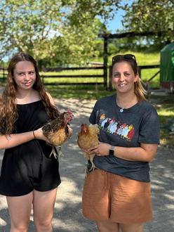 Es gab aber noch weitere Attraktionen, neben dem Spielmobil mit „Melli“, Kinderschminken und Tombola, gab es auch Hühner „zum Anfassen“.