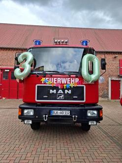 So ein Geburtstag musste natürlich gefeiert werden. Am 6. Juni wurde unser Tanker bei einem kleinen Sommerfest geehrt. Nach 30 Jahren kann so ein Fahrzeug nun auch einen Namen bekommen und muss nicht immer nur Tanker heißen. Schnell wurde sich auf den Namen „Wolfi“ geeinigt.
