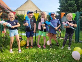 Für diesen tollen Tag bedanken wir uns recht herzlich bei den Schulanfänger-Eltern. Wir wünschen unseren fünf Großen: Emmi, Max, Jason, Lena und Lilith viel Spaß und Erfolg in der Schule, aber vor allem viel Gesundheit!