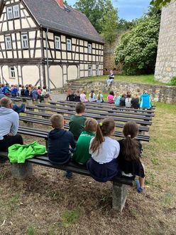 Nach all dem Zuhören durften die Schülerinnen und Schüler nun selber lesen. Sie suchten sich einen ruhigen Platz auf dem Schulhof, in den Räumen oder Zelten und lasen. Manche Kinder ließen sich vorlesen. Manche lasen alleine oder mit Freunden zusammen.