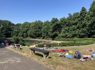 Regen, Wolken und noch mehr Wolken - sorgenvoll schauten die Schülerinnen und Schüler unserer Grundschule Osterfeld am 20. Juni 2023 zum Himmel. Nach den ersten zwei Unterrichtsstunden wollten doch alle ins Naturbad Osterfeld gehen. Selbst die Bewegungspause auf dem Hof fiel wegen Regen aus. Eigentlich hatten alle die Hoffnung schon aufgegeben.