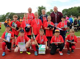 Am 14. Juni fand der traditionelle Fußballcup der Stadtwerke in Zeitz statt. Unsere Mädchen und Jungen starteten gemeinsam mit Frau Schätzke, Herrn Preußer und Herrn Renner hoffnungsvoll ins Turnier. Nach einer gemeinsamen Erwärmung mit allen teilnehmenden Teams rollte der Ball auf dem Feld. In der Vorrunde erkämpften unsere Kinder zwei Unentschieden und verloren einmal unglücklich. Immer wieder mussten die Spiele unterbrochen werden, da es oft regnete. Dies störte aber nicht die Spielfreude.