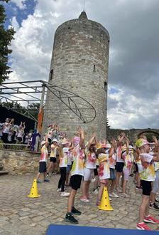 Anschließend zeigten die einzelnen Klassen, was sie gelernt hatten. Jede Klasse hatte einen Einzeltanz und anschließend eine eigene Choreografie einstudiert. Es ging rockig, mit viel Rhythmus und Lebensfreude zu. Die Lieder animierten zum Mitklatschen und Hüfte bewegen. Unter großem Applaus überraschte auch das Lehrerteam mit einer Tanzperformance, bevor dann alle gemeinsam den Abschlusstanz zeigten. Es war ein Feuerwerk an Bewegung, Begeisterung und viel Applaus. Am Ende mussten sich alle erst einmal erfrischen. Alle Tänzerinnen und Tänzer können sehr stolz auf ihre Leistung sein und wir wiederholen so eine Woche bestimmt.