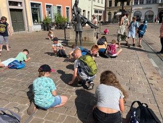Wir waren in der Stadtbibliothek Naumburg. Dort haben wir etwas über Friedrich Nieztsche gelernt. Aber zuerst haben wir uns über die Philosophie unterhalten und durften Fragen stellen, die wir uns schon immer gefragt haben. Danach durften wir Kreide nehmen und eine Frage unserer Wahl neben die Nietzschestatue schreiben. Im Nietzschehaus haben wir etwas über das Leben von Nietzsche erfahren. Viele Bilder, die Künstler von Nietzsche gemalt haben, haben wir gezeigt bekommen. Am Ende haben wir Ausmalbilder bekommen, die uns ein Künstler vorgezeichnet hat und wir durften sie ausmalen.